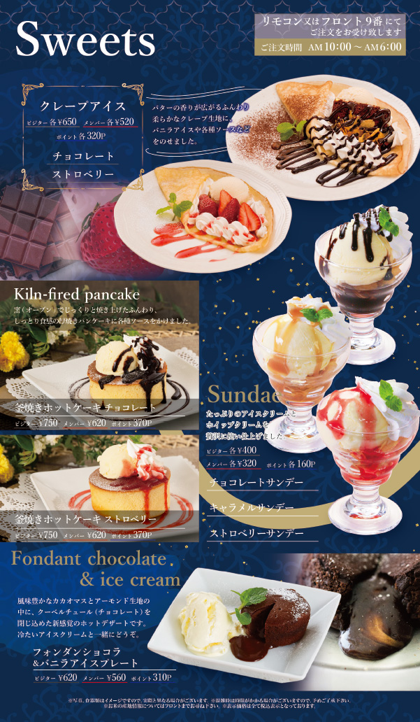 ご来店のお客様全員にウェルカムサービスとしてドリンクorスイーツを、お一人様1品無料でサービス致します。