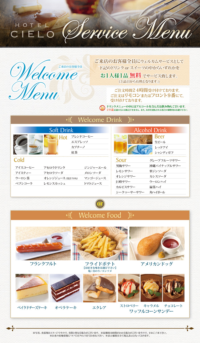 ご来店のお客様全員にウェルカムサービスとしてドリンクorスイーツを、お一人様1品無料でサービス致します。